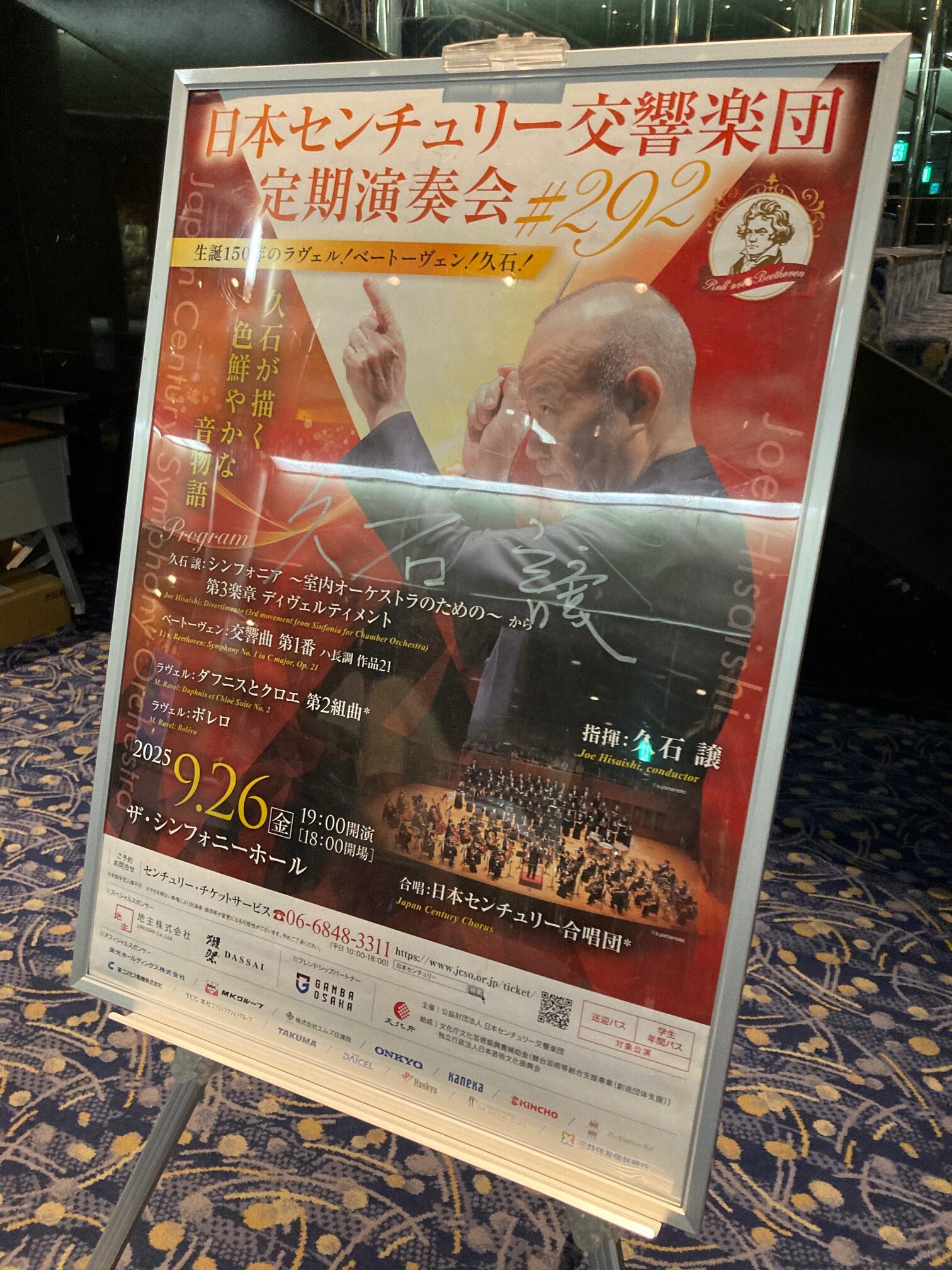 2025年9月26日、「久石譲指揮 日本センチュリー交響楽団 第292回 定期演奏会」が開催されました。日本センチュリー交響楽団音楽監督に就任したシーズン、2度目の登場となる定期演奏会です。ベートーヴェン交響曲からは前回は第6番を、今回は第1番をプログラムしています。