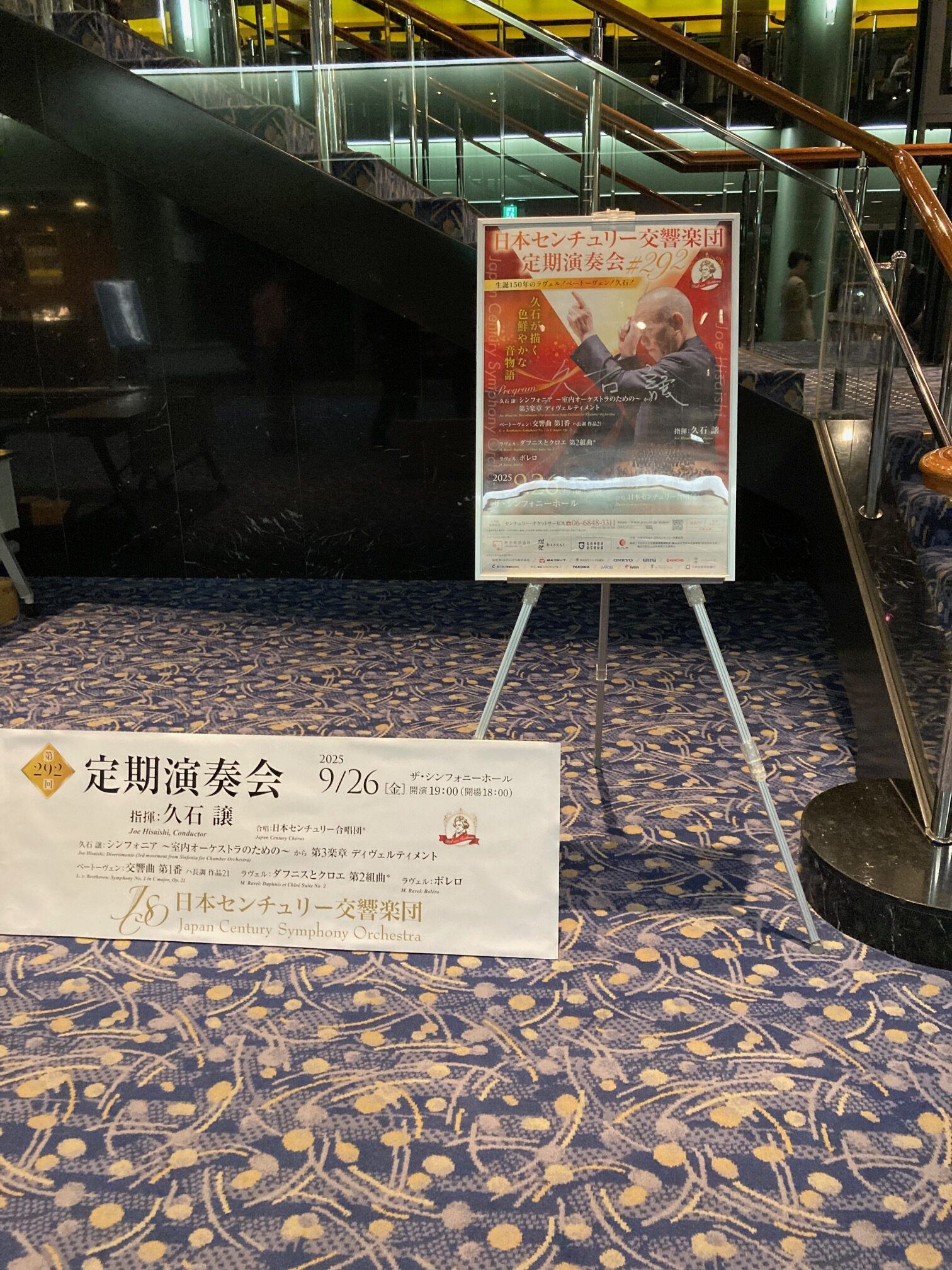 久石マエストロのタクトが導く自身の作品「シンフォニア」、ミニマルのリズムと古典の雰囲気を纏った美しい楽曲から開幕し、ベートーヴェンの若々しい交響曲第1番は精緻なアンサンブルが躍動。後半はセンチュリー合唱団も加わってのラヴェル「ダフニスとクロエ」。オーケストラと合唱が溶け合い、色彩豊かな音楽に会場が包まれました✨「ボレロ」では各セクションの持ち味を発揮した大熱演でフィナーレでした🔥”