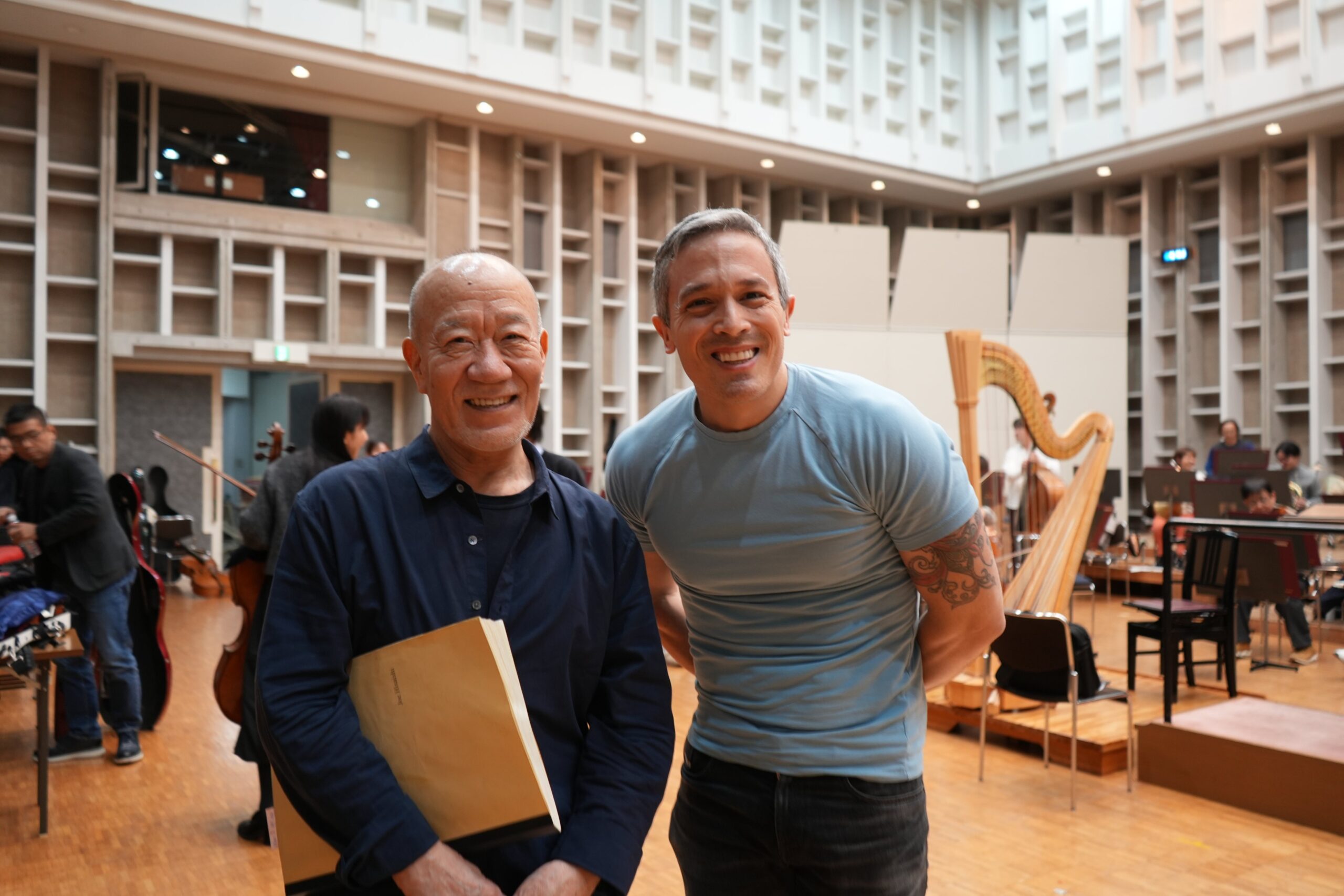 2023年の夏にハリウッドボウルで初めてLAフィルと共演して(その時は17500人の会場はSold Outになった)、エマニュエルとも最初のセッションを持った。早く作曲を開始したかったが過密なスケジュールのため翌年の2月から作曲を開始した。2024年5月に来日した彼とほぼ完成した第1楽章を聞きながら修正の方向を確認し7月にハープパートを完成し、9月中旬にオーケストレーションがも終了した。約30分の全3楽章の楽曲になった。