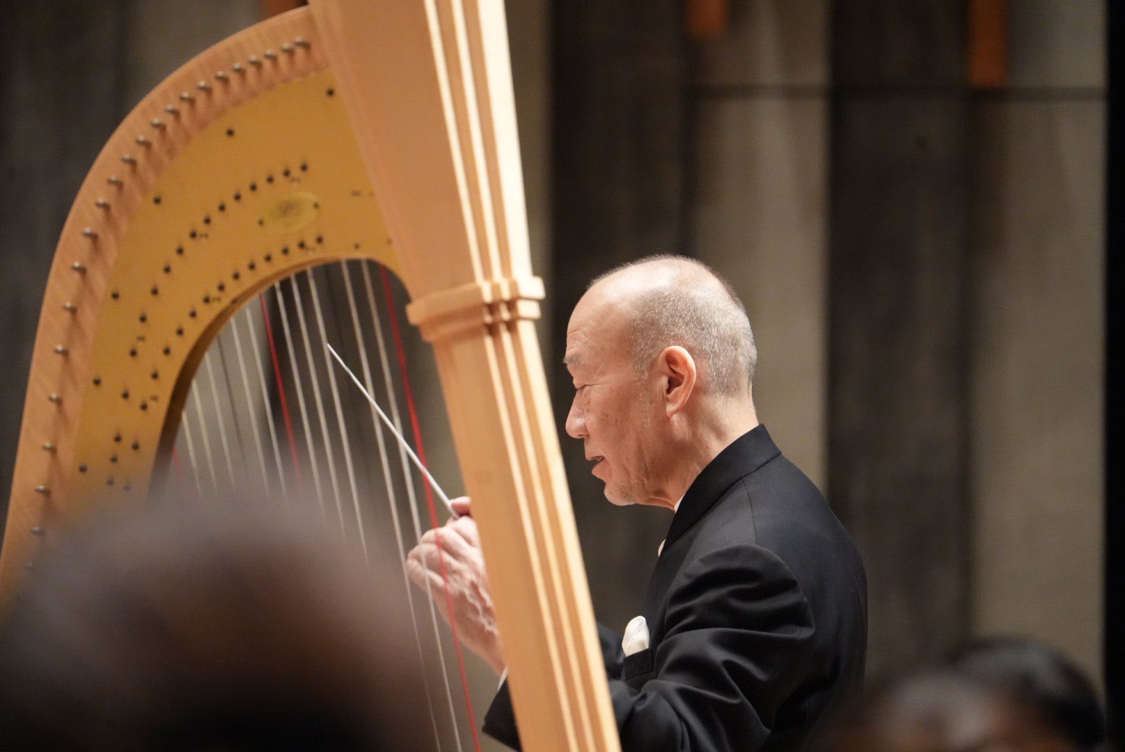 うっとりするには充分すぎるほどの時間です。セイソンさんの音色は手先からというよりもハープと体が一体となって大地的な大きさと静けさで響いてくるようです。優雅に泳ぐ白鳥の水面下のように、ハープの足捌きまで見れる至近距離は贅沢そのもので、ペダルで音高の調節(半音装置)などを自由自在に、やっぱり全身からその音を奏でているのです。
