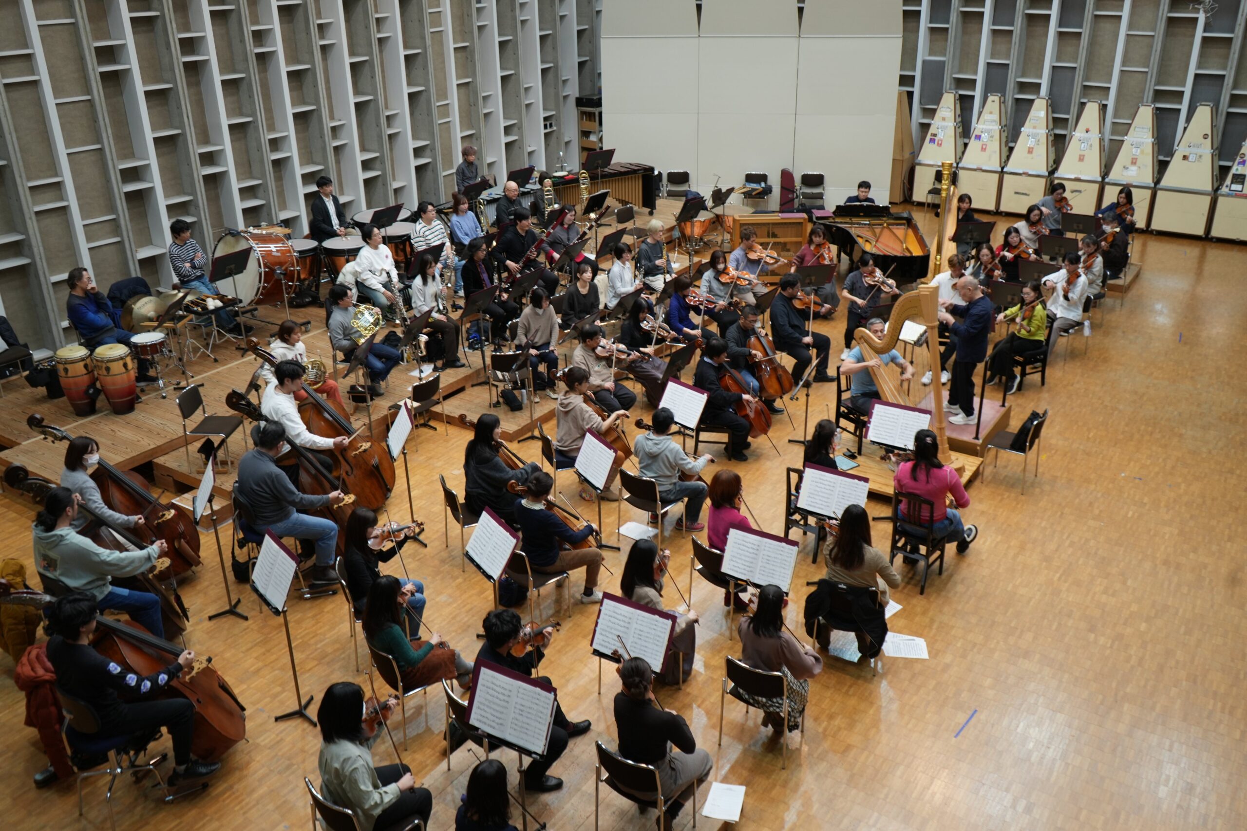 久石譲指揮のオーケストラ配置は、対向配置がデフォルトです。