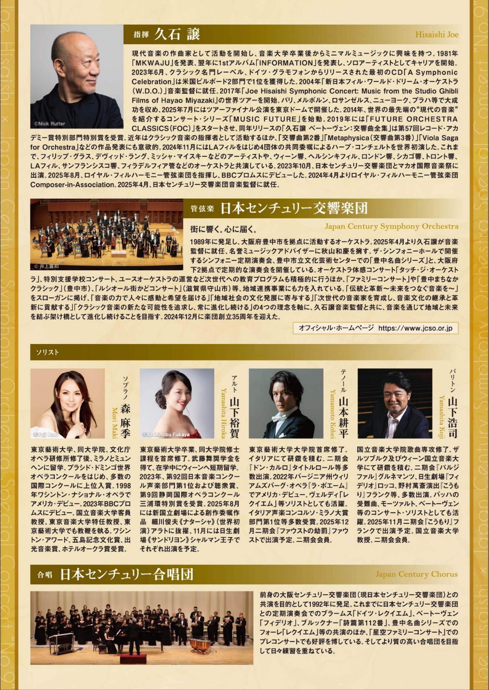 久石譲 音楽監督と日本センチュリー交響楽団が豪華ソリストと贈る待望の第九公演。